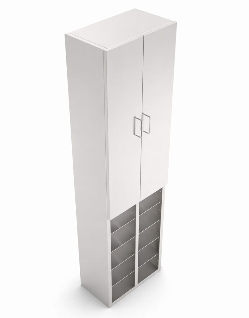 | Pés em tubo quadrado com sapatas niveladoras, opcional com rodízios móveis com trava material em inox e rodas em nylon. |