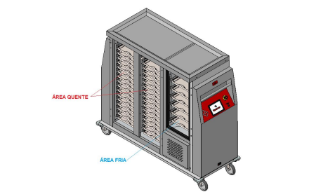 | Capacidade | 32 bandejas na parte quente 6 bandejas na parte fria |