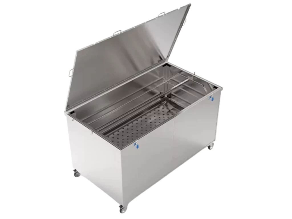Tanque e tampa confeccionados com solda inox sistema tig sem resíduos internos e com acabamento polido.